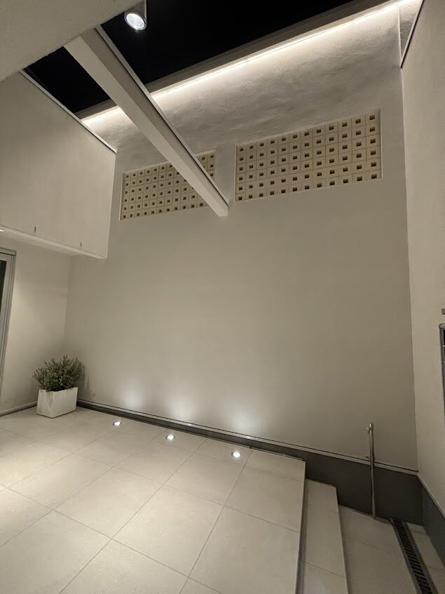 外から見ると、花ブロックから光が漏れて、新しい表情を見せてくれます。
