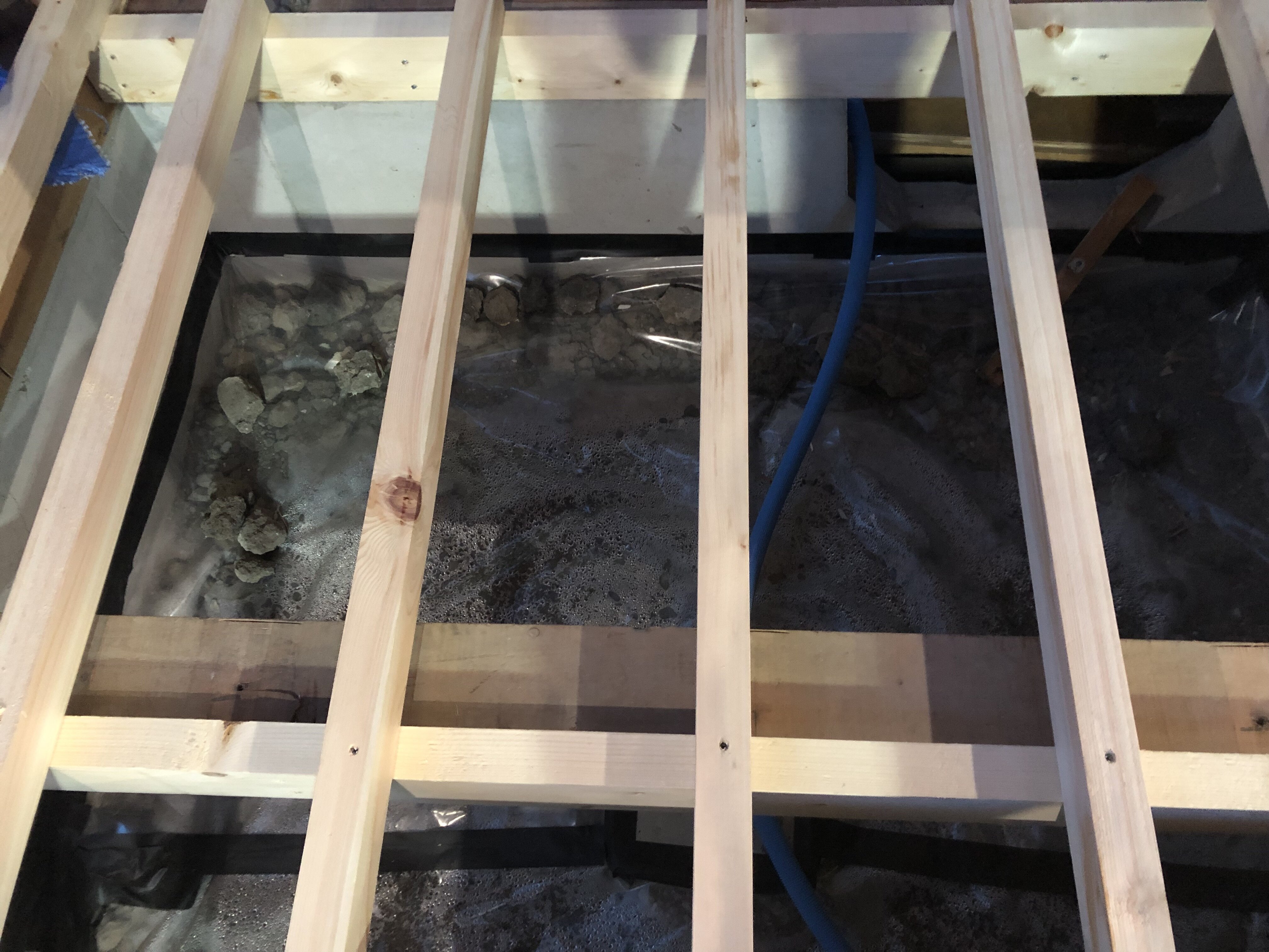 これは、1階の床の根太という床を支える骨組の補強状況です。